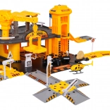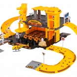 Ez a részletgazdag építőmunkás parkoló minden kis építőgép-rajongót elbűvöl. Az alsó szinten benzinkút és utak, a kézi felvonó pedig a járműveket az első emeletre viszi, ahol építési zóna és működő daru vár. A készlet kompakt, mégis rengeteg játéklehetőséget és sima gurulást kínál a csigavonalú rámpákon.