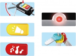 Az interaktív kulcsok távirányítóval a kis autórajongóknak készültek. Ergonomikus formája jól illik a gyerekek kezébe, a színes elemek pedig felfedezésre ösztönöznek. A gyerekek eljátszhatják a autónyitást, a motorindítást, a haladást, a fékezést és a tolatást, dudálhatnak, vagy vidám dallamokat indíthatnak, amelyek játékos hangulatba hozzák őket.