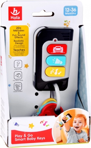 A része egy három rögzített kulcsból álló készlet, amely színben illeszkedik a távirányító gombjaihoz, és egy kihúzható kulcs, amely a valódi autókulcsot idézi. A különböző kulcsformák fejlesztik a tapintást, a formafelismerést és a figyelmet. A játék remekül támogatja az utánzó játékot, az önállóságot és a szem–kéz koordinációt.
