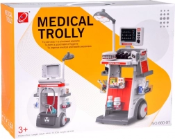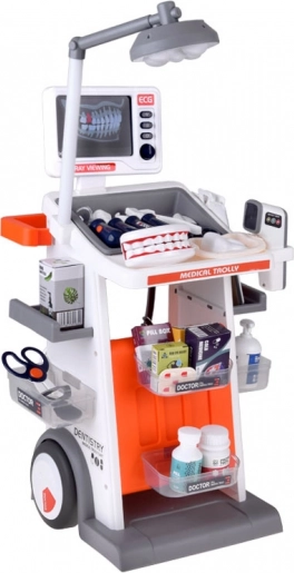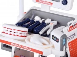 Masszív, kerekes kialakítás, több polc és tálca az eszközök és „gyógyszerek” átlátható tárolásához. A gyerekek könnyedén bárhová magukkal vihetik a kocsit, és minden kéznél van.