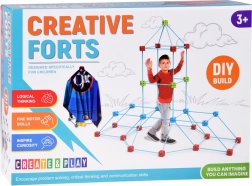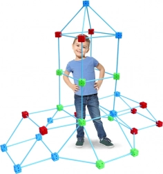 Fedezd fel a végtelen szórakozást ezzel a nagy szerkezeti szívószál és kocka készlettel! A gyerekek könnyedén építhetnek erődöt, házikót, tornyot, iglut és saját titkos bázist. A pehelykönnyű pálcák és a masszív, többnyílású csatlakozók stabil építményeket biztosítanak, a mintás fedővászon barátságos sátrat varázsol a vázból, a hálós tárolózsák pedig megkönnyíti a pakolást. Ideális a kreativitás, térbeli gondolkodás és a finommotorika fejlesztésére.