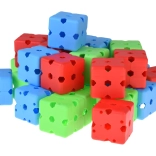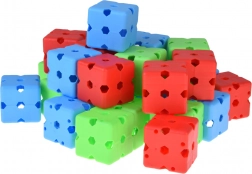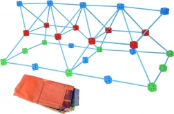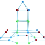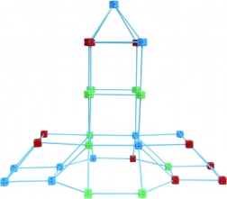 Színes kockák többirányú nyílásokkal, amelyek lehetővé teszik a pálcák különböző szögekben való összekapcsolását. Ennek köszönhetően könnyedén építhetők tornyok, kupolák és tágas játék-erődcskék.