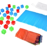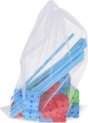- 58× pálca (kb. 38 cm hossz, kb. 1 cm átmérő), 29× összekötő kocka (kb. 5 × 5 × 5 cm), 1× mintás textil ponyva (kb. 230 × 155 cm), 1× hálós tárolózsák