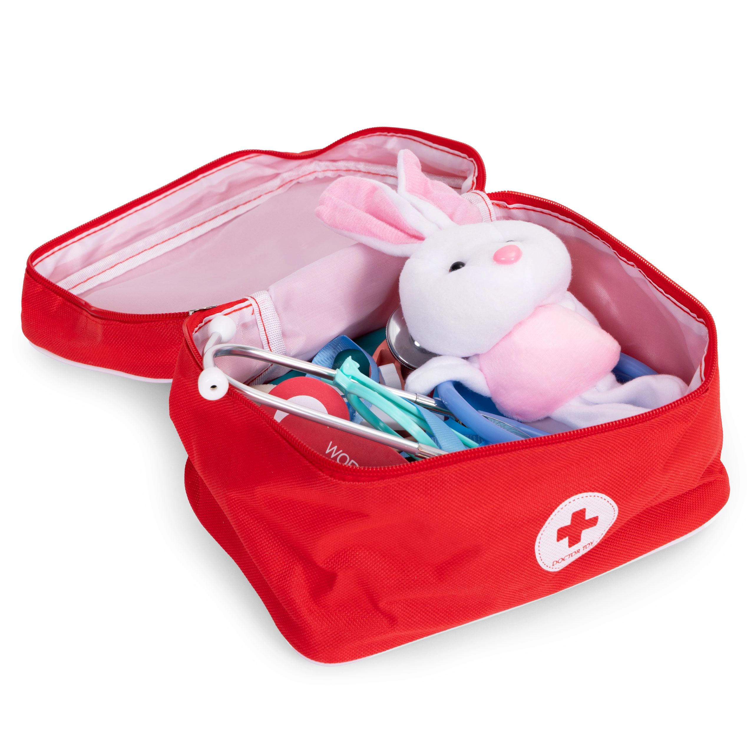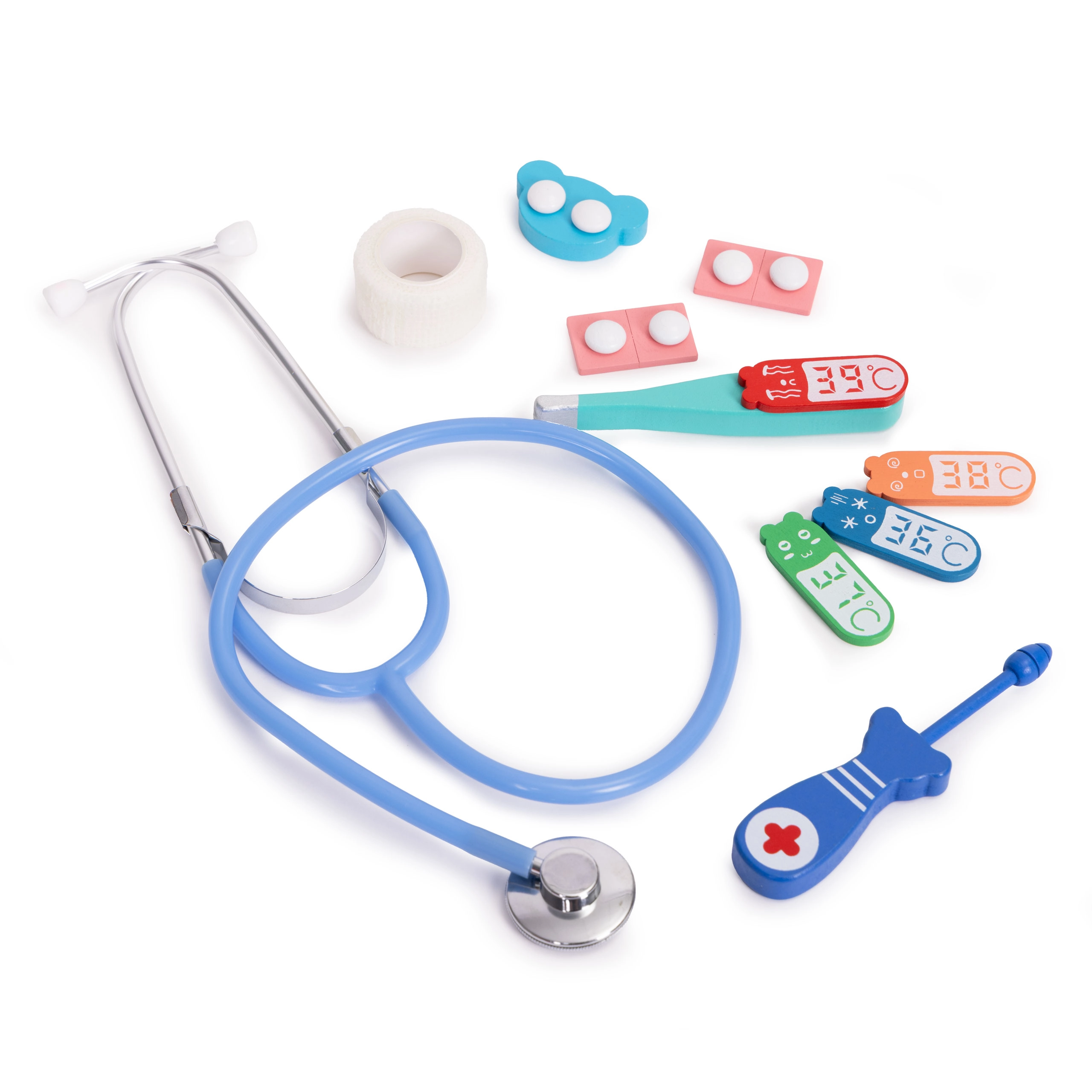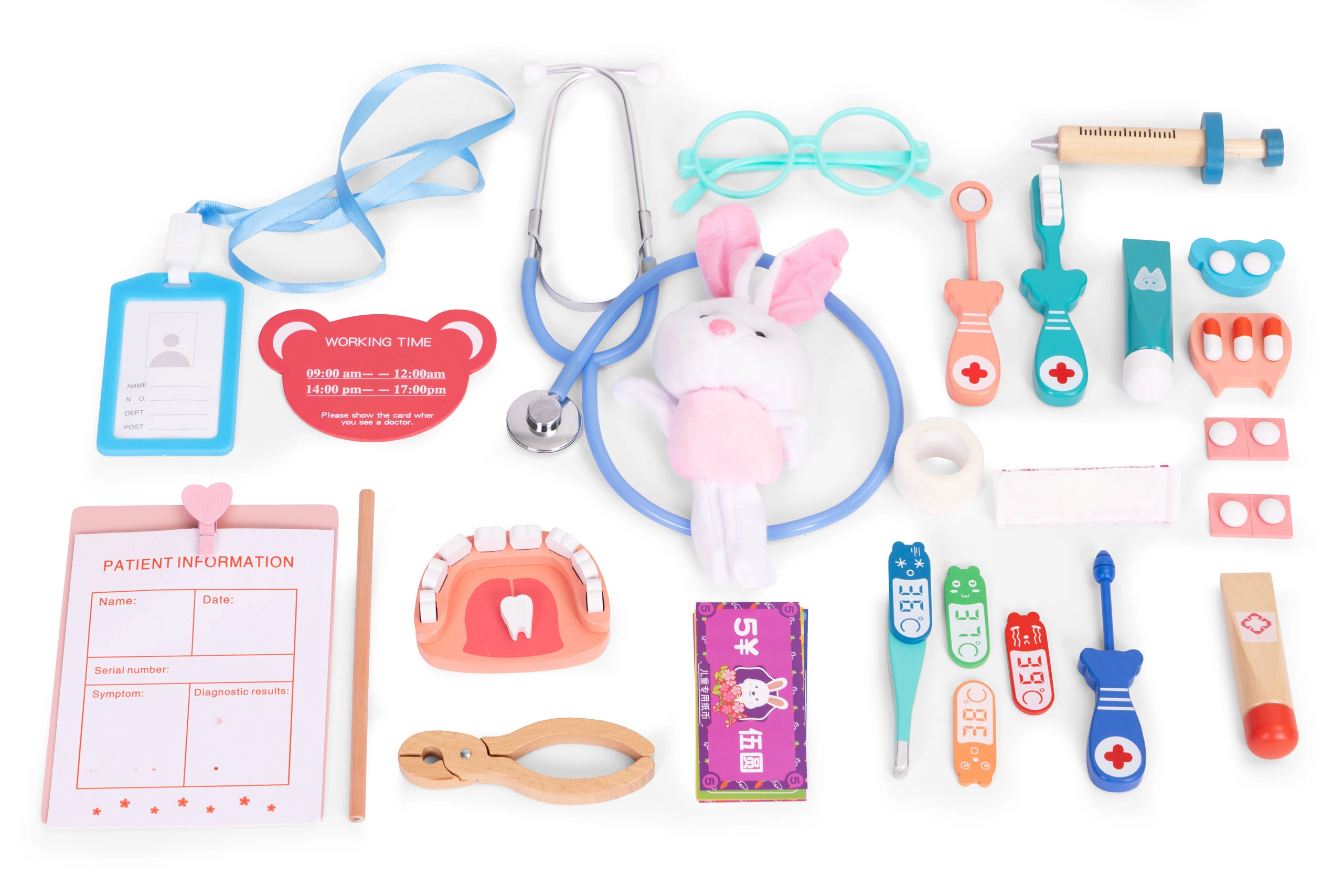Sztetoszkóp, hőmérő, fecskendő és egyéb eszközök teszik lehetővé, hogy a gyerekek „vizsgálatokat” végezzenek, és biztonságos környezetben tanuljanak a gondoskodásról.