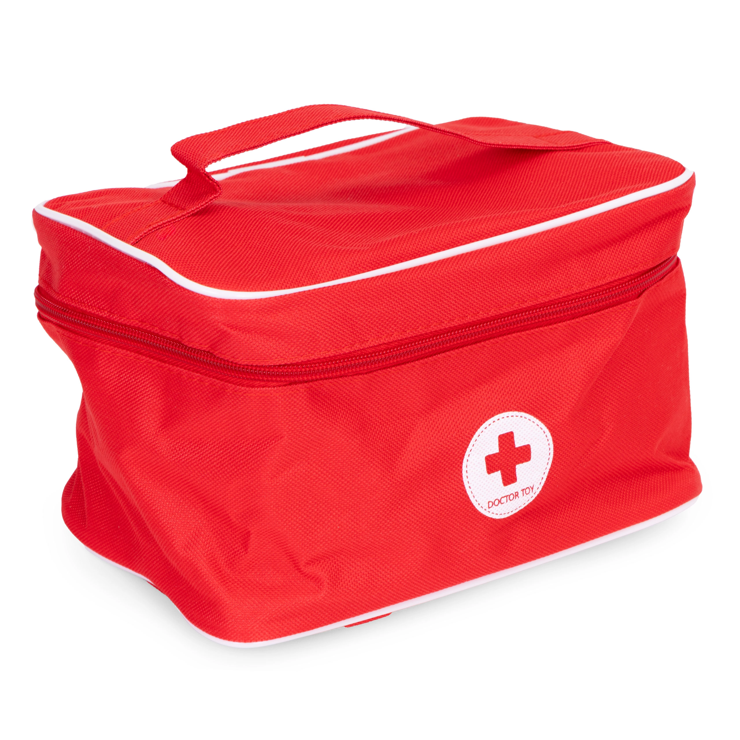 Puha orvosi táska cipzárral és fogantyúval, amely egyben tartja az összes kiegészítőt – ideális utazáshoz és óvodába is.