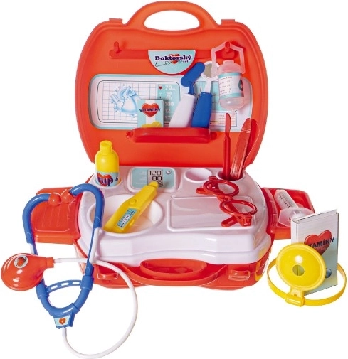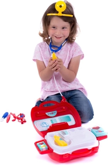 Szórakoztató orvosi készlet kis doktoroknak praktikus bőröndben, amely mindent tartalmaz a doktorosdihoz. Támogatja a fantáziát, a szerepjátékot és a finommotorikát. A könnyű műanyag eszközöknek, például a sztetoszkópnak, hőmérőnek vagy injekciónak köszönhetően a gyerekek biztonságosan kipróbálhatják a betegek ellátását és gondozását.