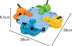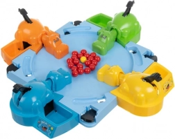 Pörgesd fel az izgalmas golyócsatát! Minden játékos egy nagy karral irányítja a saját vízilovát – elég lenyomni, és a víziló kinyitja a száját, majd „lenyeli” a golyókat. A szabályok azonnal érthetők, így kisebb és nagyobb gyerekek, valamint felnőttek is élvezni fogják.