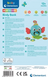 A Clementoni márkájú, madárka formájú, bájos persely játékosan segíti a gyerekeket a pénzügyi tudatosság fejlesztésében. Praktikus nyílással rendelkezik az érmék bedobásához, könnyen kiüríthető, és minőségi, biztonságos anyagokból készült. Remekül megállja a helyét eredeti ajándékként és gyerekszobai dekorációként is.