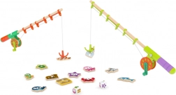 A Fa horgászjáték népszerű fejlesztő eszköz és játék egyben. A gyerekek a mágneses bottal színes halacskákat fognak, megkülönböztetik a színeket és gyakorolják a fogást. A masszív faanyag és a simára csiszolt élek kellemes tapintást és biztonságos használatot nyújtanak.