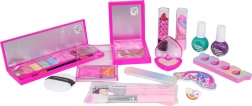 Szemhéjpúder- és szájfénypaletták, játék körömlakkok, rúzsok, ecsetek, reszelők és lábujjelválasztó – minden, ami egy kreatív „szépségszalonos” szerepjátékhoz kell.