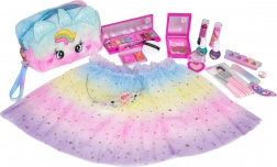 Gyerek sminkkészlet szivárványos tüll tutu szoknyával és unikornisos táskával (22 darab)
