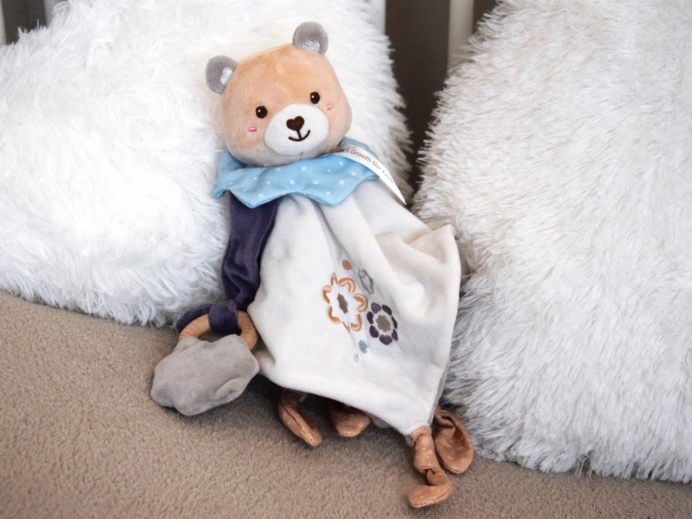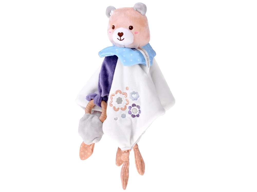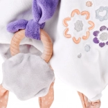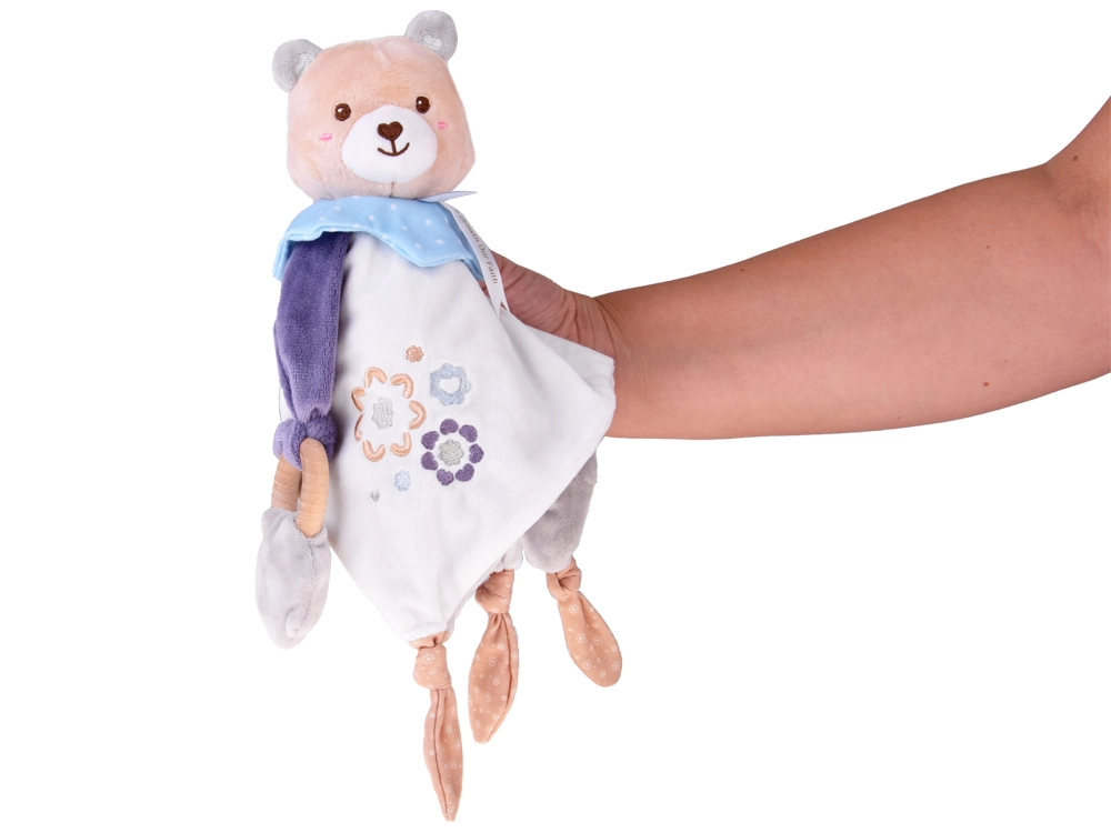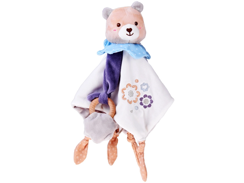 A különféle anyagoknak, a hímzett virágmotívumoknak, az ujjaknak való csomóknak és a levehető rágókának köszönhetően enyhíti a fogzás kellemetlenségeit, és fejleszti a tapintást és a látást. Könnyű és könnyen megfogható – tökéletes a kis kezekhez és a mindennapos használathoz otthon, sétán vagy a babakocsiban.