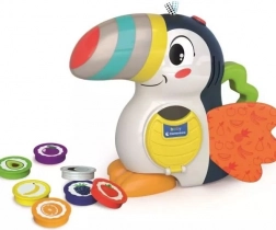 A CLEMENTONI BABY interaktív Adrián tukán remek társ az első felfedezésekhez. A zseton csőrbe helyezése után a tukán azonnal reagál – a csőre a behelyezett gyümölcs színében világít, a zsetont felismeri és hangosan megnevezi. Így a gyerekek természetes módon értik meg az ok-okozati összefüggéseket, és játékosan tanulják a színeket és a gyümölcsök nevét.