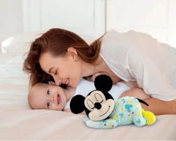 Ez a selymes plüss MICKEY EGÉR ideális társ elalváshoz és nyugodt nappali pillanatokhoz. Ötvözi a nyugtató fényhatásokat a dallamokkal és hangokkal, amelyek a baba természetes környezetét idézik. A változó intenzitású színes fény (kromoterápia) segít megnyugodni, csökkenti a feszültséget és kellemes légkört teremt.