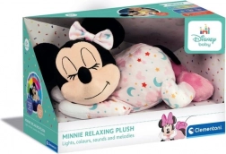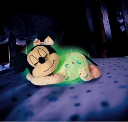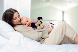 A CLEMENTONI BABY pihe-puha plüss Minnie segít megnyugtatni a babát és megkönnyíti az elalvást a színterápia és a lágy dallamok kombinációjával. Kínál fehér zajokat, klasszikus zenét, nyugtató dallamokat és szívdobogás hangot, miközben színes fényekkel, változó intenzitással világít. A pizsamás, éjszakai motívumú, bájos dizájnból ellenállhatatlan alvótárs lesz.