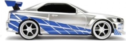 Részletgazdag ezüst‑kék kivitel matricákkal, szárnnyal és sportkerekekkel – a Halálos iramban rajongóinak és a modellek gyűjtőinek.