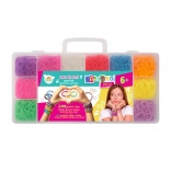 Készíts saját színes karkötőket, gyűrűket és díszeket ezzel a teljes kreatív készlettel. Tartalmaz szövőkeretet, színes gumikat és egy praktikus rendszerezőt, így minden átláthatóan kéznél van és készen áll az alkotásra. A készlet fejleszti a kreativitást, a finommotorikát és a színek és minták kombinálását. A rekeszes műanyag doboznak köszönhetően utazáshoz is ideális.