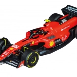 Részletgazdag Ferrari SF-23 „C. Sainz, No.55” valósághű matricázással és slick gumikkal, amelyek a magnest és a dupla keféket kihasználva biztosan tartják az ívet.