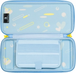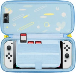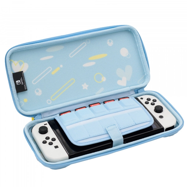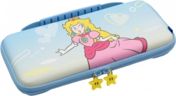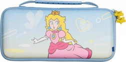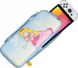 A teljesen burkolt belső kialakítás megóvja a konzolt a karcolásoktól és ütődésektől, míg a kártyatartó akár 10 címet is befogad, hogy a játékkönyvtárad mindig kéznél legyen. A belül és kívül is Peach hercegnőt ábrázoló dizájn, kiegészítve a Super Mario világából ismert csillagos cipzárhúzókkal, játékos stílust kölcsönöz a toknak.