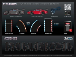A készlet 2 Porsche 911 GT3 autót, egyeneseket, kanyarokat és START/CÉL elemet tartalmaz. A pálya könnyen össze- és szétszerelhető, 25 cm széles, és lehetővé teszi az előzést egyenesekben és kanyarokban, sőt pályán kívül is a BOOST funkcióval. Minőségi kidolgozásának köszönhetően a szett igényes játékosoknak és 12 évtől kezdő felhasználóknak is ideális.