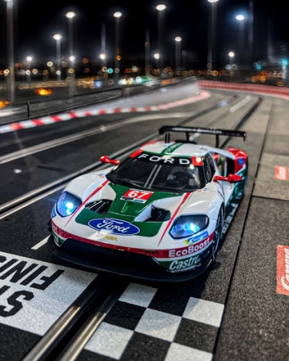 Élvezd az adrenalinban gazdag futamokat a Carrera Digital 124 Ford GT „No. 67” 1:24 méretarányú modelljével. Ez a részletgazdag autó működő első és hátsó lámpákat, kiváló érintkezést a dupla keféknek köszönhetően és stabil futást vezetősínnel és mágnessel kínál. Ideális választás igényes slot-car rajongóknak, akik sebességet, megbízhatóságot és valósághű élményt keresnek.