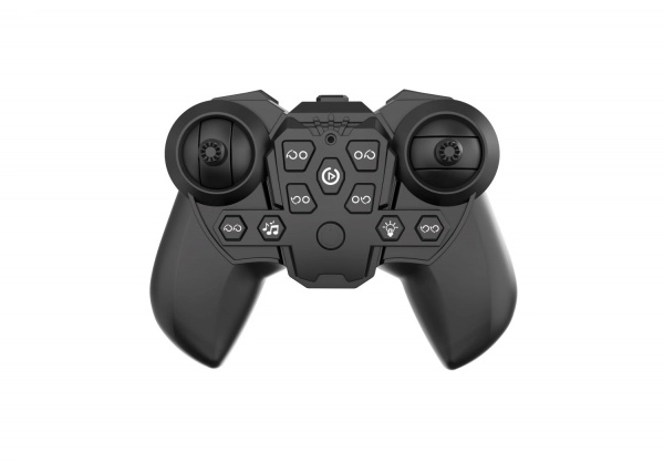 Ergonomikus vezérlő két joystickkal és dedikált gombokkal a fényekhez, hangokhoz és a demó módhoz – pontos és intuitív irányításért.