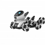 A FLEG robotkutya ideális társ gyerekeknek és technikai rajongóknak egyaránt. Helyben megfordul, minden irányba halad, és LED „szemeinek” köszönhetően élő és modern hatást kelt. A masszív felépítés és a hatirányú mozgás sima haladást biztosít a sima felületeken.