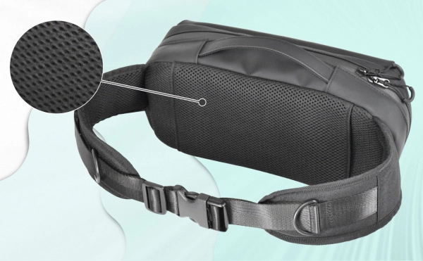 Letisztult keresztpántos kialakítás vízlepergető felülettel és cipzárral – a nélkülözhetetlenek kéznél és biztonságban, akár kültéren is.