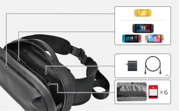 A fő rekesz megóvja a konzolt a karcolásoktól és a kisebb ütődésektől, míg a praktikus külső zseb kéznél tartja a kiegészítőket, például a Joy‑Con vezérlőket, kártyákat, kábeleket vagy fülhallgatót. Az állítható vállpánt és a felső fogantyú kétféle hordási stílust tesz lehetővé – vállon és kézben.