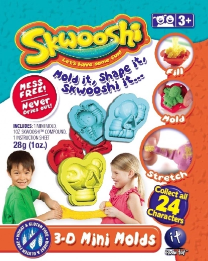 A SKWOOSHI csomagok a formázás varázsát hozzák el kompakt kiszerelésben. Minden bontás meglepetés – belül 28 g prémium gyurma és egy egyedi dizájnú 3D mini forma vár. A gyurma nem ragad, nem csinál rendetlenséget és nem szárad ki, így újra és újra használható.