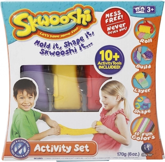 A Skwooshi kreatív készlet a gyerekeknek végtelen formázási lehetőséget nyújt az egyedi anyagnak köszönhetően, amely rugalmas, könnyen formázható, és közben nem hagy rendetlenséget maga után. Ideális otthoni alkotáshoz, óvodákba és iskolákba.