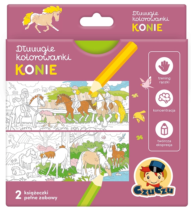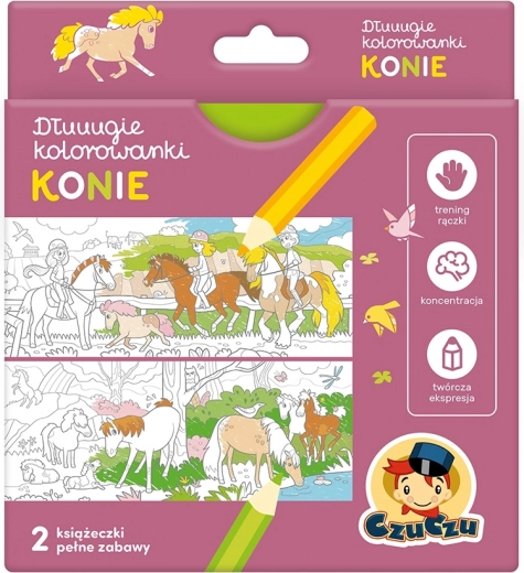 Ez az eredeti CZUCZU készlet bevezeti a gyerekeket a lovak és az istálló életének világába. Az egyik oldalon nagy méretű kifestők várnak, a másikon életkornak megfelelő feladatok és rejtvények az óvodások számára. Az illusztrációk tele vannak humorral és részletekkel, amelyek támogatják a fantáziát és a koncentrációt.
