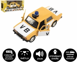 A valósághű VB rendőrautó Lada modell fém és műanyag kombinációjából készül a nagyobb tartósság és hosszú élettartam érdekében. A visszahúzós meghajtásnak köszönhetően elengedés után elindul, míg a fény- és hangeffektek fokozzák a játékélményt. A nyitható első ajtók növelik az autentikusságot és támogatják a kreatív játékot.