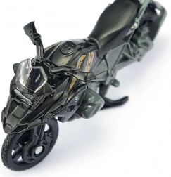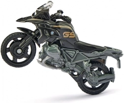 Az ikonikus BMW R 1250 GS LCI hű megjelenítése precíz karosszéria-, váz- és futómű-részletekkel elegáns fekete-ezüst kombinációban.