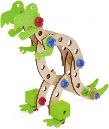 Az Eichhorn Constructor dinoszauruszok építőkészlet kiváló választás 4 éves kortól a kis építők számára. A 100 gondosan megmunkált bükkfa- és tartós filcalkatrésznek köszönhetően a gyerekek három ikonikus dinoszauruszt építhetnek meg, miközben fejlődik a türelmük, a logikus gondolkodásuk és a kézügyességük. A csomag gyermekeknek szánt szerszámokat és részletes útmutatót tartalmaz, amelyek megkönnyítik az összeszerelést, és sok szórakozást nyújtanak felesleges frusztráció nélkül.