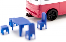 A vonóberendezésnek és a cserélhető kerekeknek köszönhetően könnyen bővíthetők a játékopciók és az összekapcsolás más modellekkel. A csomag kempingbútort is tartalmaz – székecskéket és asztalkát – a teljes jelenetekhez, a pikniktől a hosszabb kirándulásokig.