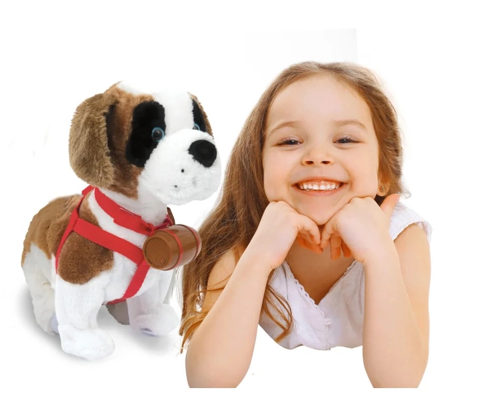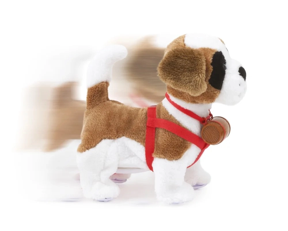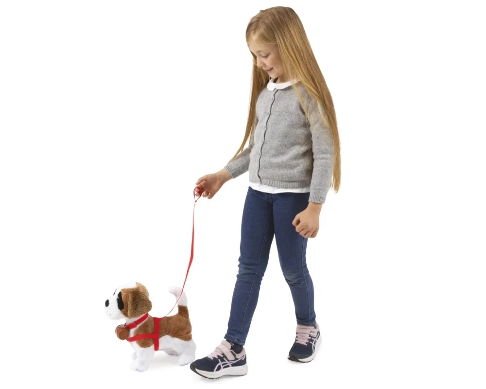 Samby egy puha plüss Szentbernáthegyi, amely hűen utánozza egy igazi kutya viselkedését. Ha megsimogatod a fejét, örömmel ugat és csóválja a farkát, a hám felhelyezése és az oldalának simogatása után lelkesedéssel reagál. Tapsra sétálni indul – mindez bonyolult vezérlés nélkül.