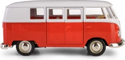 Élvezze a klasszikus mikrobusz ikonikus stílusát a Volkswagen T1 Samba modellel elegáns piros‑fehér kombinációban. A precíz karosszéria‑kivitel, krómozott részletek és átlátszó műanyag ablakok kiemelik a legendás autó autentikus megjelenését. A nyitható ajtóknak köszönhetően belátás nyílik a beltérbe, bővítve a játékszcenáriókat és a gyűjtői kiállítást.