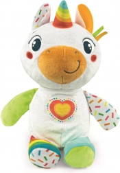A BABY CLEMENTONI aranyos interaktív unikornisa egy puha játék 6 hónapos kortól, amely fényhatásokat, melódiákat és hangokat kombinál az érzékelés és a finommotorika fejlesztéséhez. A különböző textúrák, a susogó részek és a könnyű megfoghatóság támogatják az önálló játékot. Praktikus a gépi moshatóság és az elemek a csomagban.