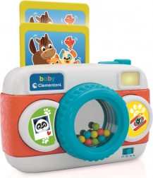 Ez a beszélő fényképezőgép a CLEMENTONI márkától úgy lett tervezve, hogy a kisgyermek keze könnyen kezelje az összes gombot. A színes gombok különböző hangokat és dallamokat indítanak, a villanófény felkelti a figyelmet, a lencsébe épített apró golyós tükör pedig ösztönzi a gyerekeket a perspektíva és a mélység felfedezésére.