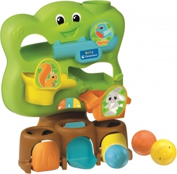Ez a színes fa barátságos állatmintákkal ideális első logikai játék a totyogóknak. A gyermek a lombkorona nyílásán át dobja be a golyókat, és figyeli az útjukat a pályán. Minden golyó a megfelelő színű ajtó mögött jelenik meg, ami természetes módon fejleszti a kéz–szem koordinációt, a színek felismerését és az ok–okozat megértését.