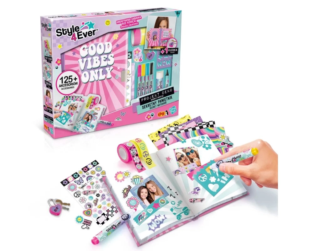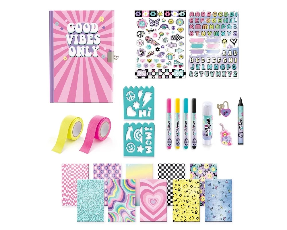Ezzel a szórakoztató készlettel a gyerekek megalkothatják saját személyes és biztonságos naplójukat a zárnak köszönhetően, amely megóvja gondolataikat és élményeiket. A gazdag tartalom támogatja a fantáziát és lehetővé teszi a egyedi személyre szabást – a színes mintáktól egészen az eredeti matricákig.