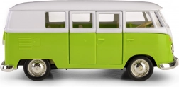Az 50-es évek legendás mikrobuszának ez a precíz modellje vonzó zöld-fehér kivitelben ötvözi a gyűjtői minőséget a játékos funkciókkal. A fém karosszéria műanyag részletekkel tartósságot és lenyűgözően valósághű megjelenést biztosít, amely bármely vitrinben kitűnik.