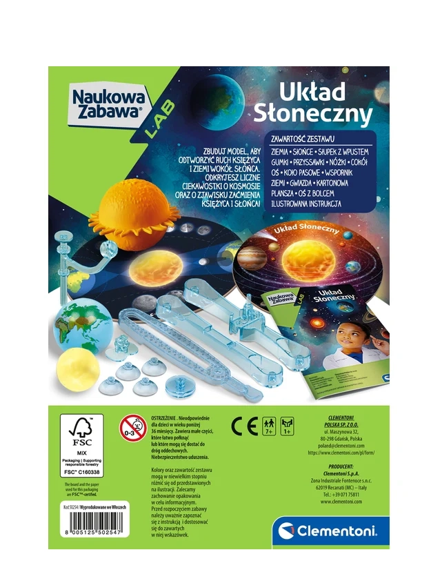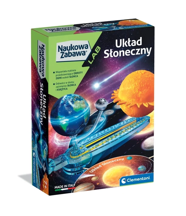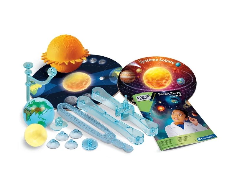 A Clementoni interaktív készlete segít a gyerekeknek megérteni a Naprendszer működését. A Föld és a Hold kézi köröztetésével a gyerekek könnyen megérthetik olyan jelenségeket, mint a napfogyatkozás és a holdfogyatkozás. A Olaszországban készült minőségi kivitel és az érthető útmutató biztosítja a szórakoztató tanulást, a finommotorika és a térbeli érzékelés fejlesztését.