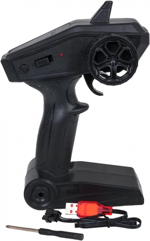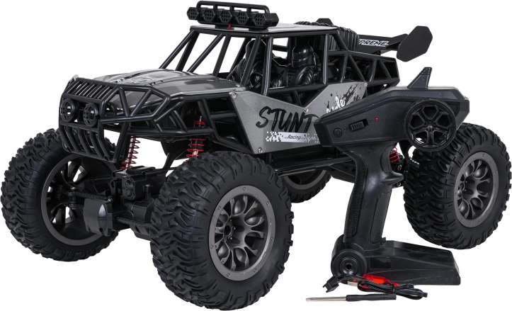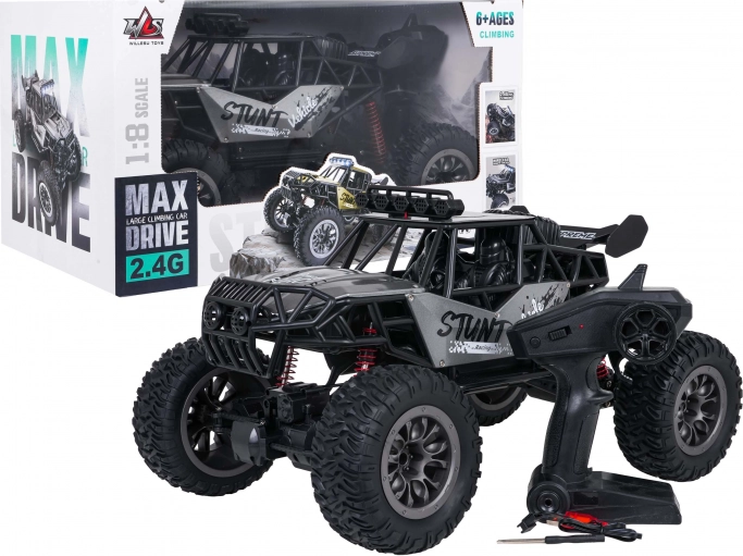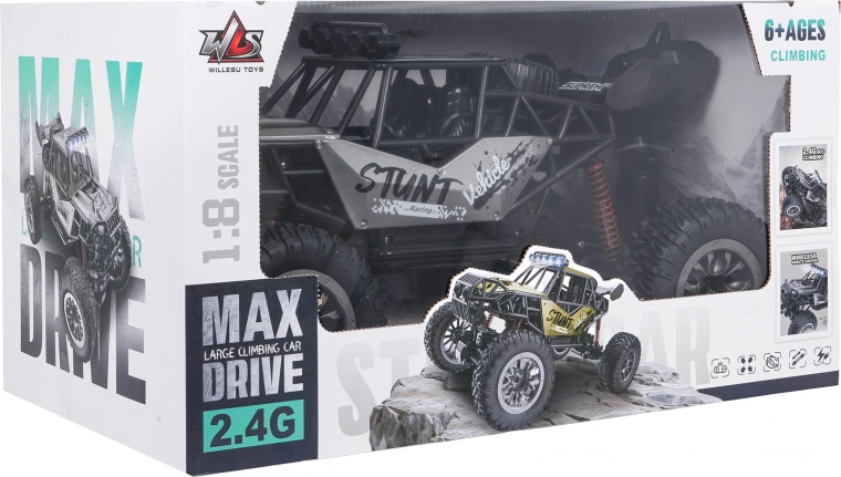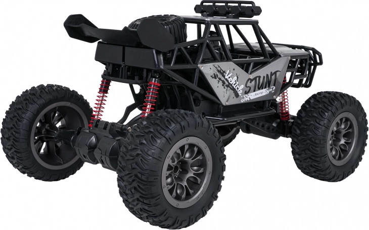 A 4x4 összkerékhajtásnak, a magas hasmagasságnak és a független rugós felfüggesztésnek köszönhetően a modell könnyedén mászik akadályokra és látványos kaszkadőr mutatványokra is képes. Az első lámpák és a tetőn lévő LED panel javítják a láthatóságot és látványos megjelenést adnak. A praktikus, 7,4 V-os akkumulátoros tápellátás (a csomagban) kíméli az elemeket, a távirányító 4× AA elemmel működik (nem tartozék).