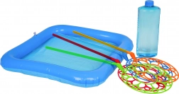 - 4× buborékfújó karika, oldatos üveg, felfújható tálka