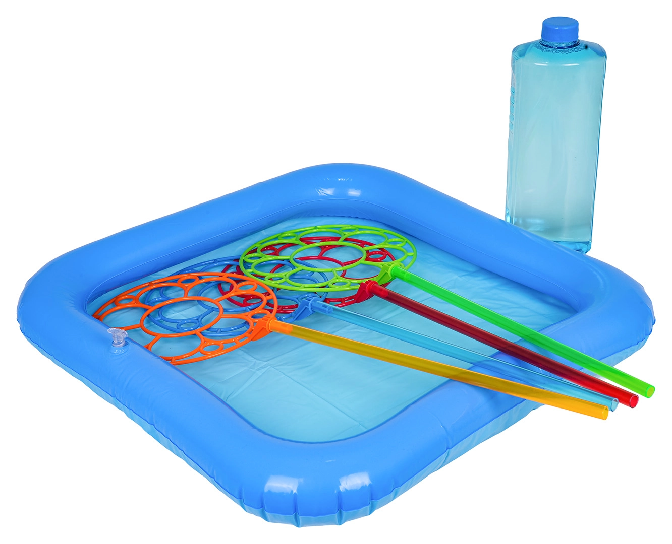 Ezzel a készlettel a gyerekek egyszerűen készíthetnek gigantikus szappanbuborékokat. Csak öntsd az oldatot a felfújható tálkába, mártsd bele az egyik karikát és fújj – a mosoly és az öröm garantált. Ideális családi programokhoz és barátokkal való szabadtéri játékhoz.