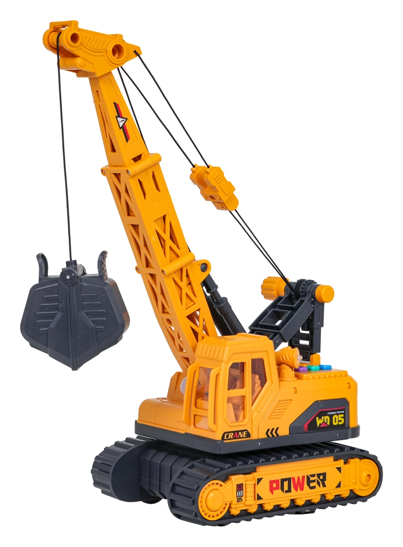 Az interaktív, 1:16 méretarányú lánctalpas daru örömet szerez a 3 éves kortól ajánlott kis építőknek. Kínál kézzel vezérelt gémkart és leengedhető fogókosarat, 360°-ban forgatható alapot, valamint fény- és hangeffekteket. Minőségi kidolgozásának és részleteinek köszönhetően ideális a kreatív építőjátékokhoz. Az elemek a csomag részét képezik.