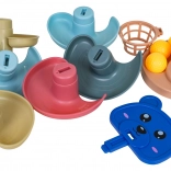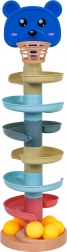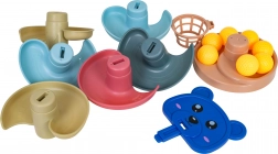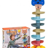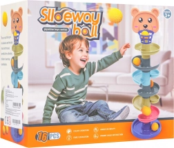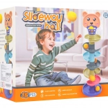 Ez a színes golyópálya macifejjel és felső kosárral elbűvöli a kis építőket és a kíváncsi kezeket. Az elemeket egyszerűen összepattinthatod, felépíthetsz egy akár 6 szintes tornyot, és figyelheted, ahogy a labdák a spirálokon lecsúsznak az alapig. Minél magasabb a torony, annál nagyobb a kihívás a kosárba találni – remek játék a türelem és a koncentráció fejlesztésére.