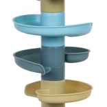 A labdák több szinten gördülnek lefelé, a gyerekek pedig követhetik útjukat a kosártól egészen a gyűjtőalapig. Remek vizuomotoros tevékenység.